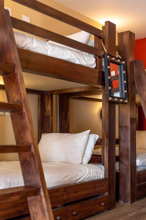 Bedroom | 7 bunk beds | Bedroom 1: 4 single beds | Bedroom 2: 6 single beds | 4 single beds and 2 double beds | 6 single beds and 1 double trundle bed | 3 bunk beds, fold up bed |